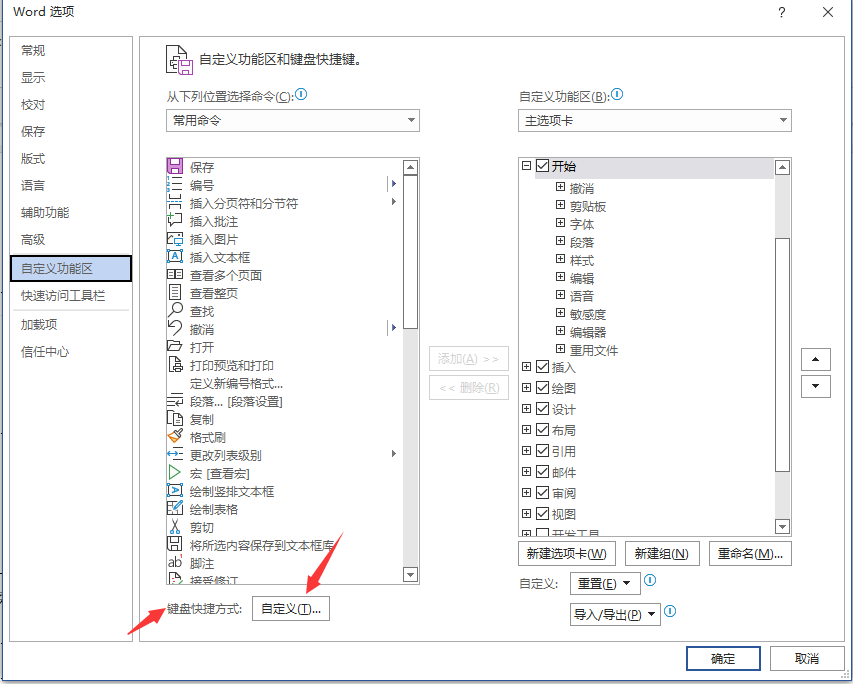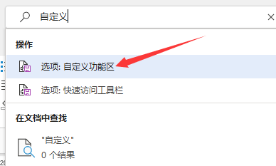 首先在上方搜索栏输入 自定义,选择自定义功能区进入界面