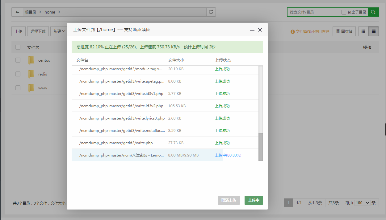 首先从Github下载源码压缩包上传至服务器 /home 目录