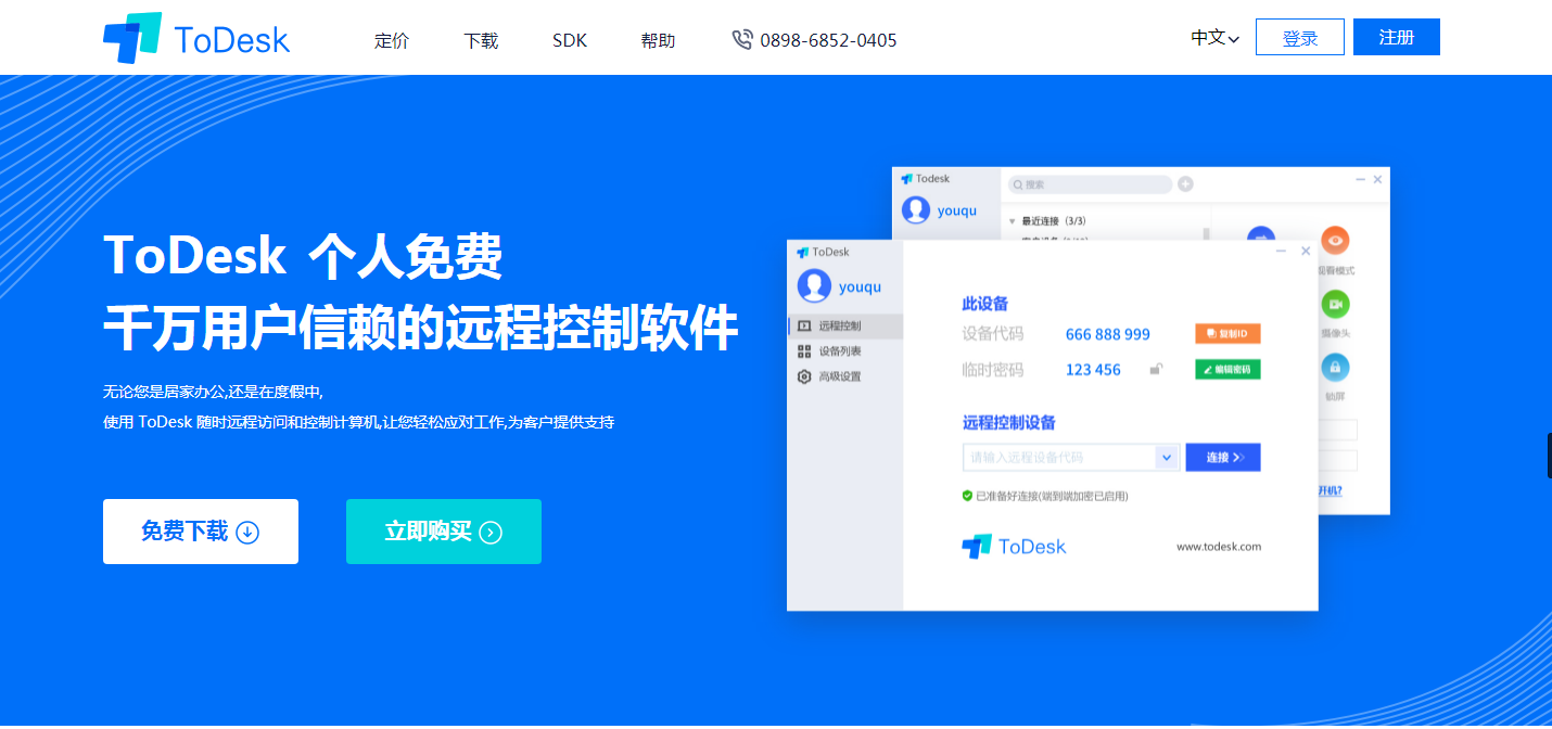 如果让我用一句话来描述ToDesk,那就是跨平台多设备协同P2P端到端加密的免费远程桌面软件