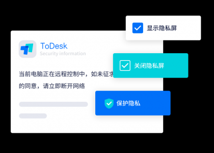 ![]() | 隐私屏隐私屏可以很好地保护被控设备的隐私,成功开启隐私后,被控设备的显示器将显示安全须知图片,同时锁定被控设备 |
