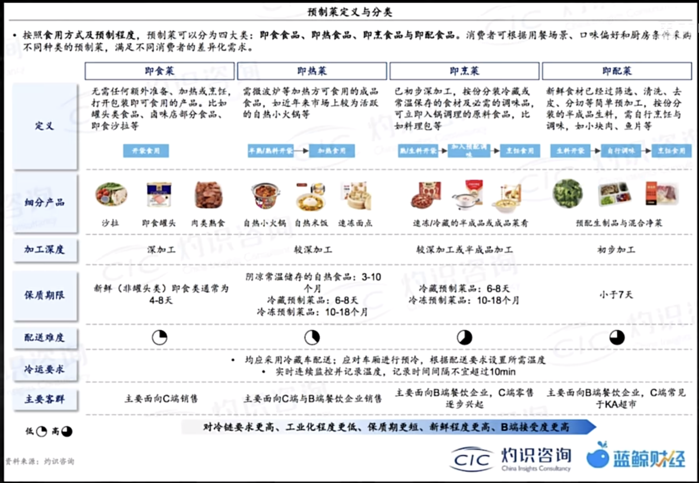 伴随着预制菜产业长期发展,目前市场的预制菜已经形成了专业化,全面化的布局,从分类来看,可以将其分为即食菜,即热菜,即烹菜,以及即配菜,例如常见的八宝粥,黄桃罐头就是属于即食菜,而类似于旅行自热火锅,或者街边便利店中的冷冻米饭面条套餐就是属于即热菜,而即烹菜就是简单烹饪一下就可以享用的,街边的炸鸡汉堡店,以及水饺馄饨店(非现包的那种,我就特别喜欢吃袁记云饺现包馄饨)这种就是即烹菜,还有就是像一些卤料店中配饭的土豆丝,洋葱丝,胡萝卜丝这种切好洗干净的净菜就是即配菜。